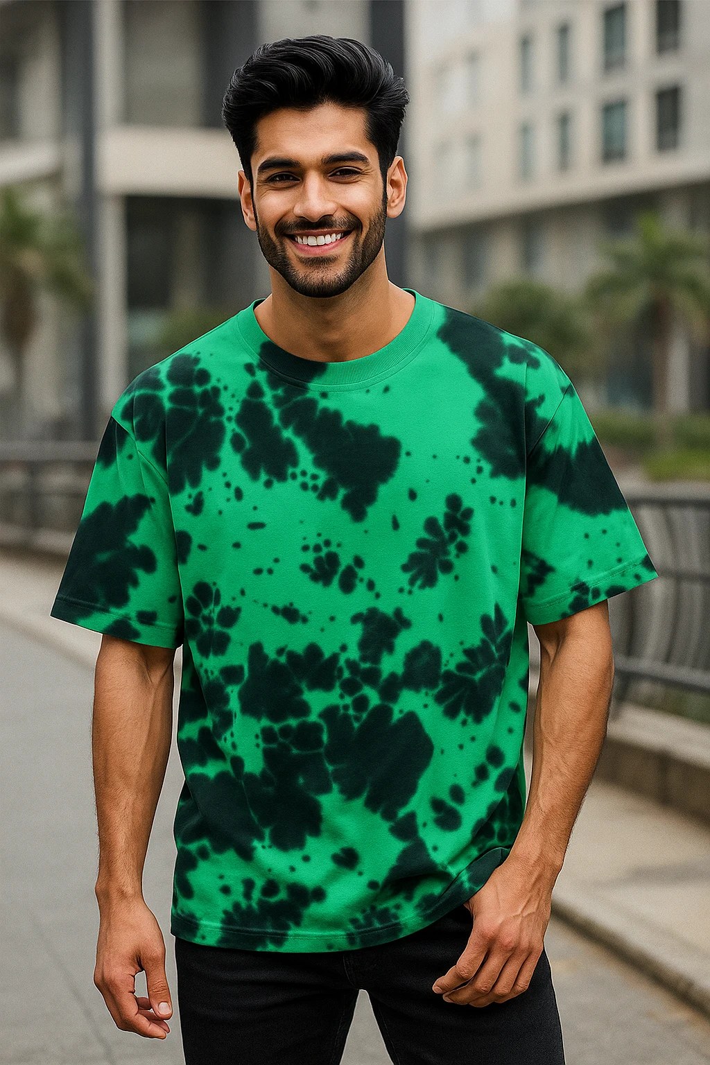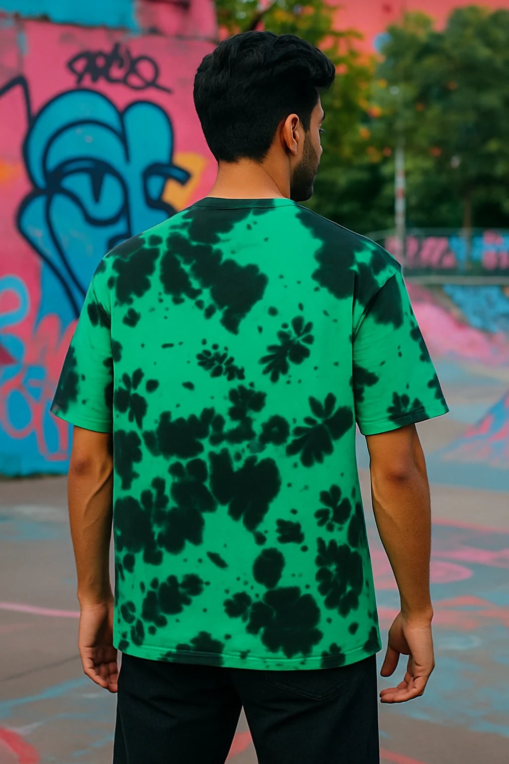 This oversized tie-dye t-shirt brings an effortless urban vibe with its vibrant green and black splatter design. Crafted for Gen Z style icons, this piece pairs perfectly with joggers or distressed denim. Ideal for layering or solo wear — stand out, effortlessly.